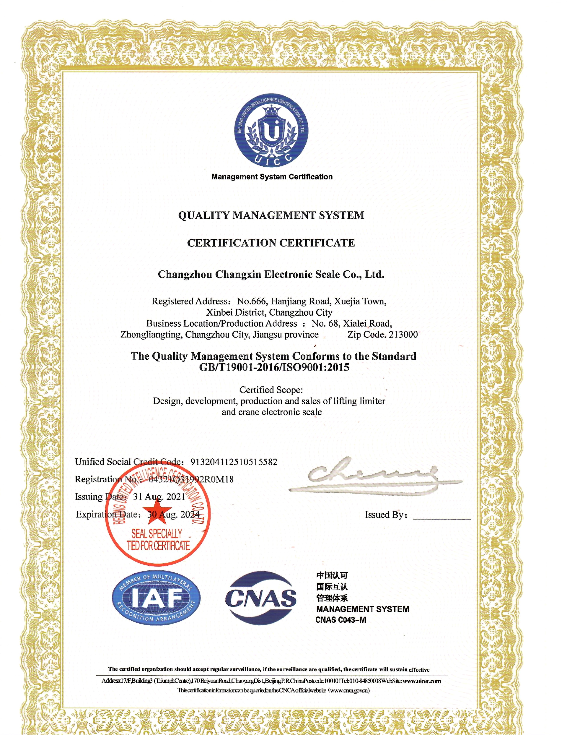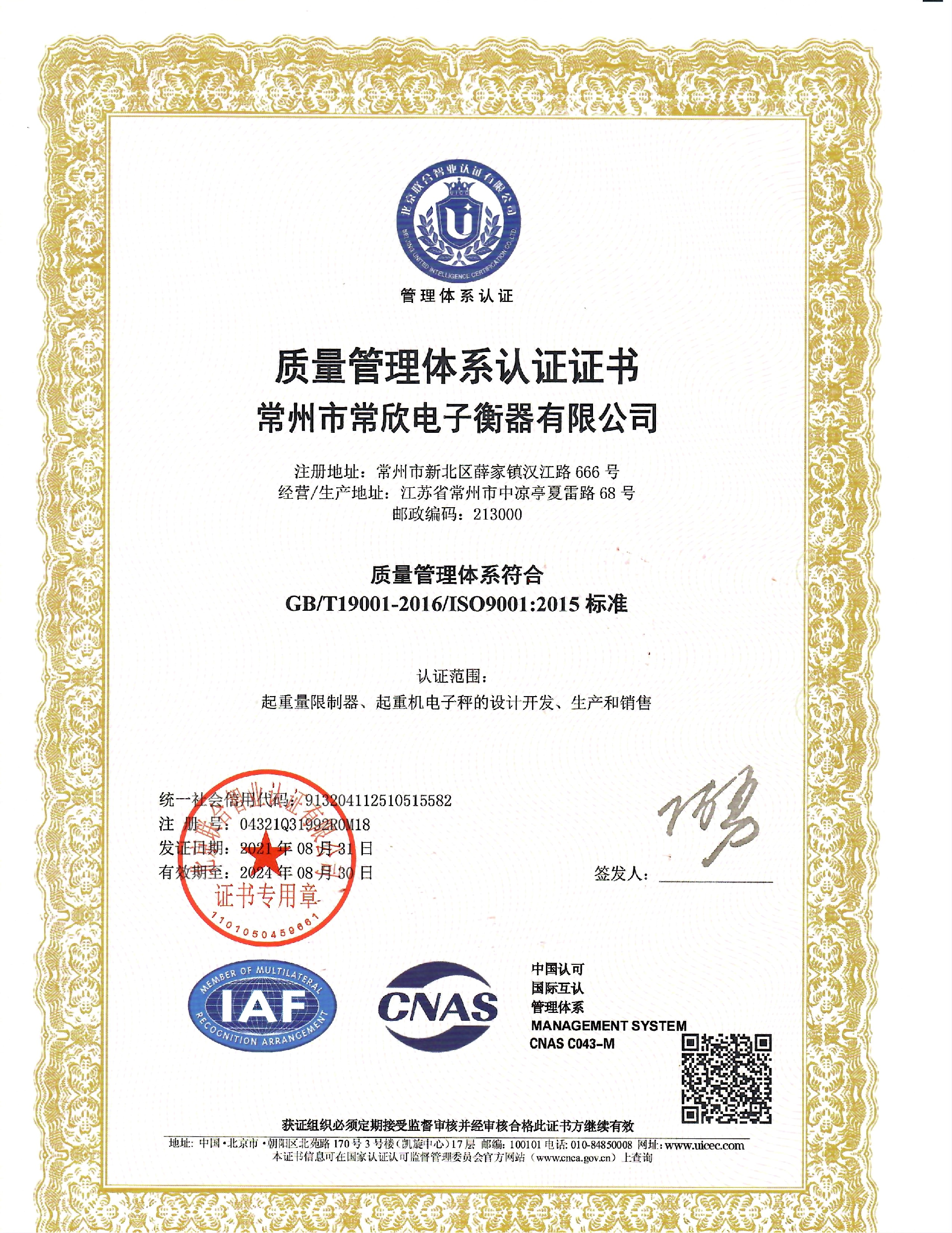 1998年12月,常欣公司率先在同行業(yè)中通過了IS09001質(zhì)量體系的認(rèn)證。2008年被確認(rèn)為全國起重機(jī)械標(biāo)準(zhǔn)化技術(shù)委員會(huì)委員,參與制訂